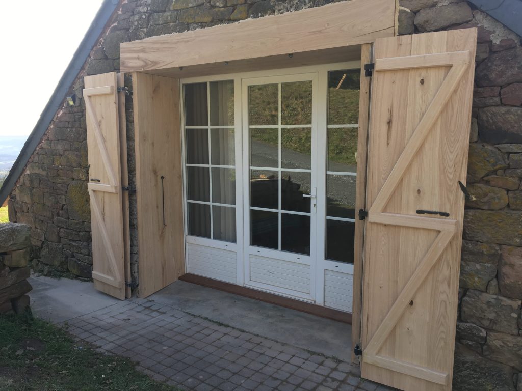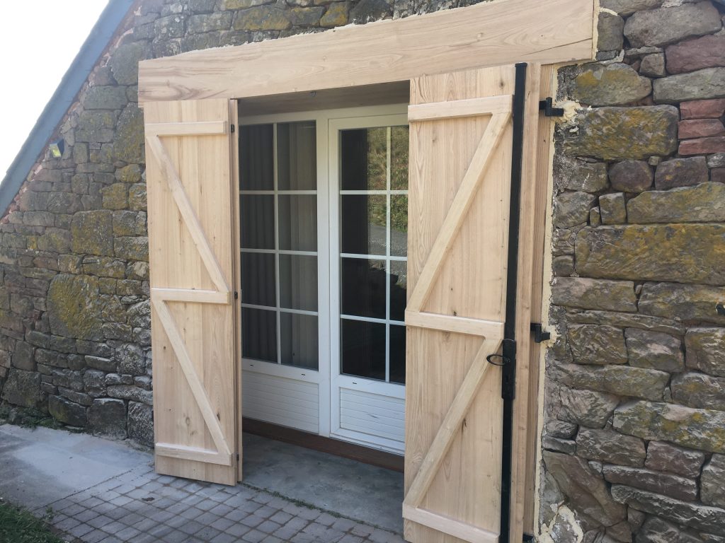 Aménagement extérieur Volets Garage 100m2 ossature bois Pose du bardagePorte d’entréeVue d’ensemble Autres réalisations Terrasse